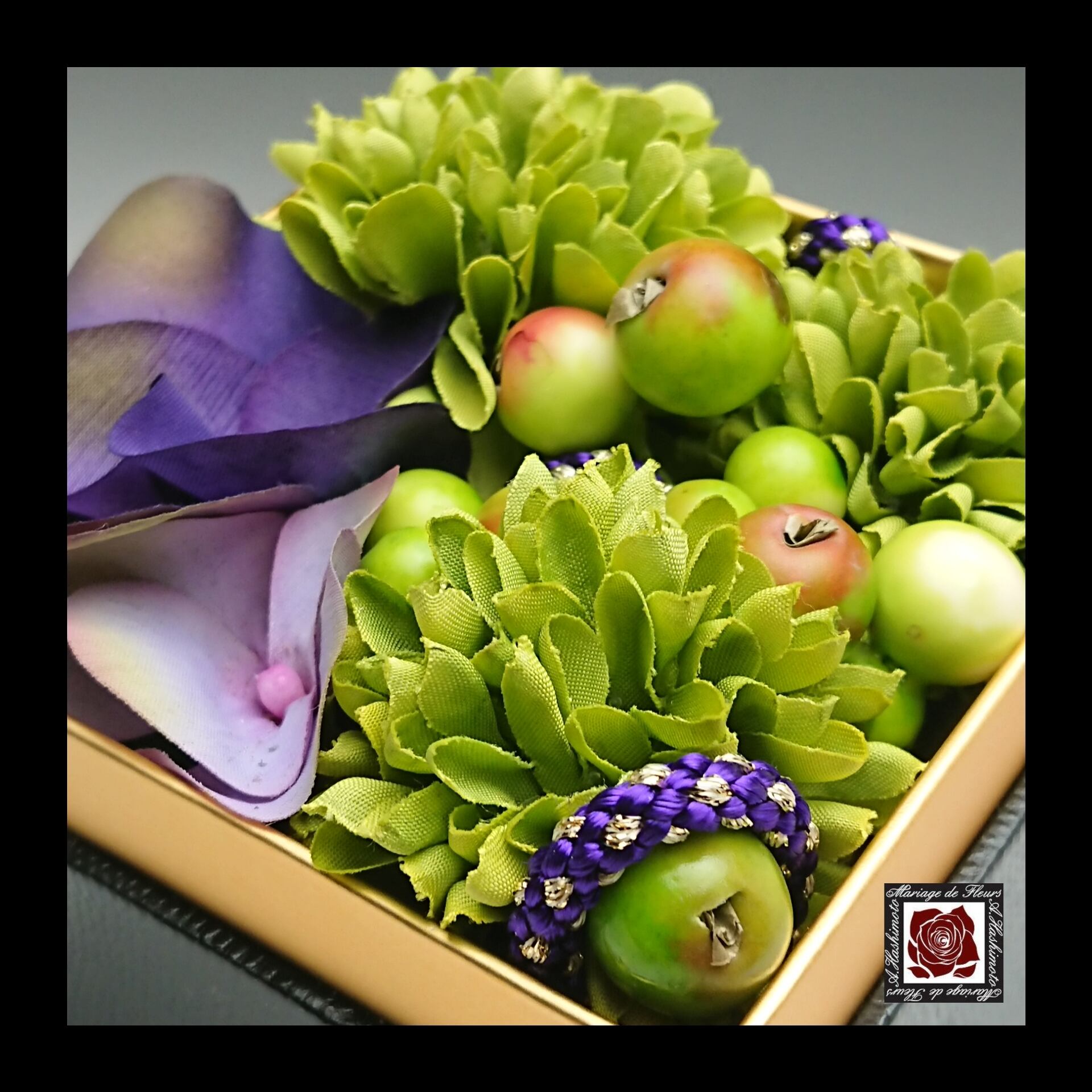 高級感があるボックスに紫陽花、菊などを合わせて制作したフラワーボックスです。